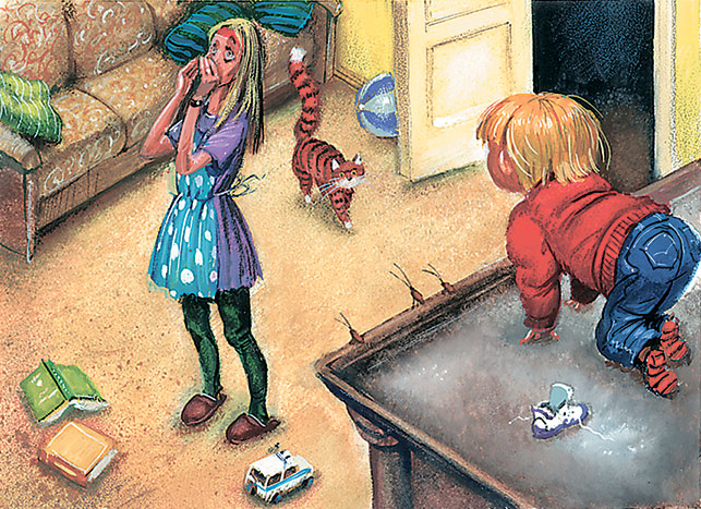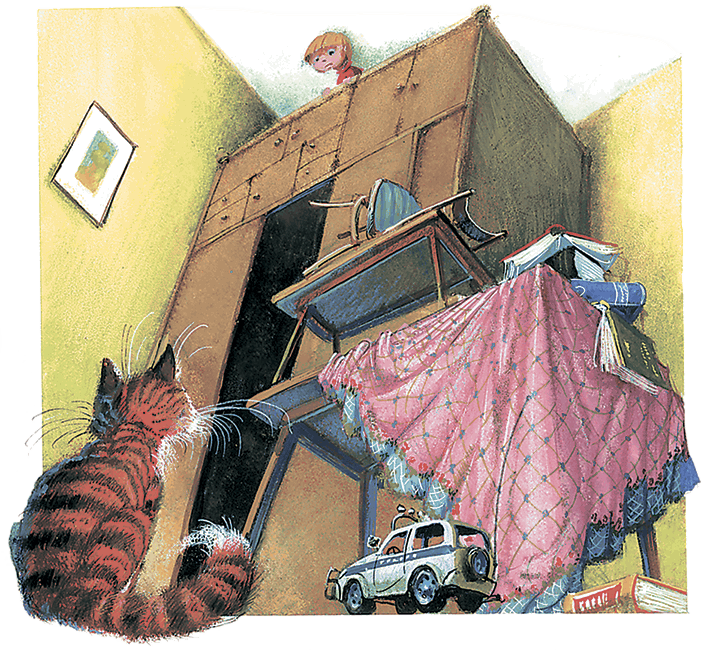 Кое-как он на шкаф перелез и затих. Попробуй-ка скажи маме: