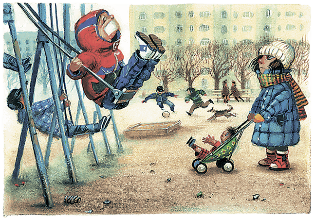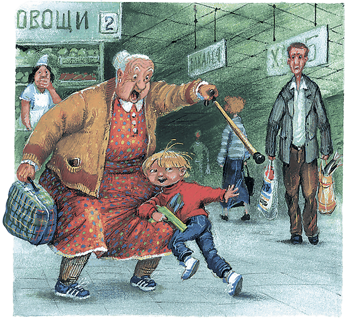 Но однажды у мамы руки совсем были заняты. Она рыбу купила, свёклу и хлеб. Вот тут-то Яша разбегался. И как в одну старушку врежется! Бабушка так и села.