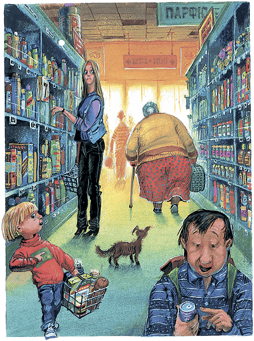 Когда мама приходила с Яшей в магазин, она обычно Яшу за руку держала. А Яша всё время выкручивался.