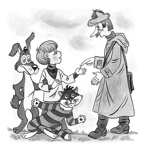 – Возьмём, – отвечает дядя Фёдор. – Втроём веселее. Как тебя зовут?