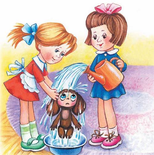 – Ой, – кричали дети, – бедный Чебурашка совсем промок! Давайте будем его выжимать!