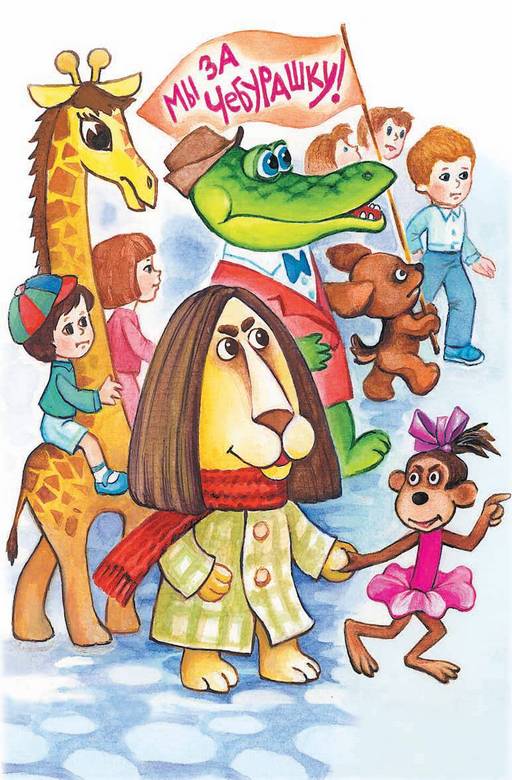 Все пришли: лев Чандр, жирафа Анюта, обезьянка Мария Францевна и даже собака Тобик с плакатом: «Мы за Чебурашку!» Ребята из детского сада, где работал Чебурашка, кричали: