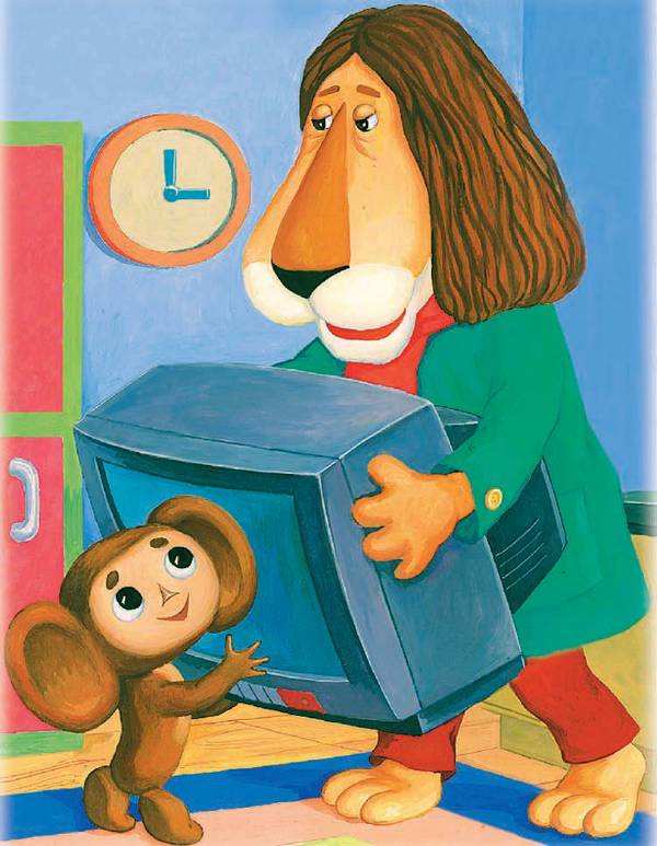 Когда Чебурашка получил новую квартиру, детский сад подарил ему мебель. А потом стали приходить друзья и дарить подарки. Пришёл лев Чандр и принёс телевизор.