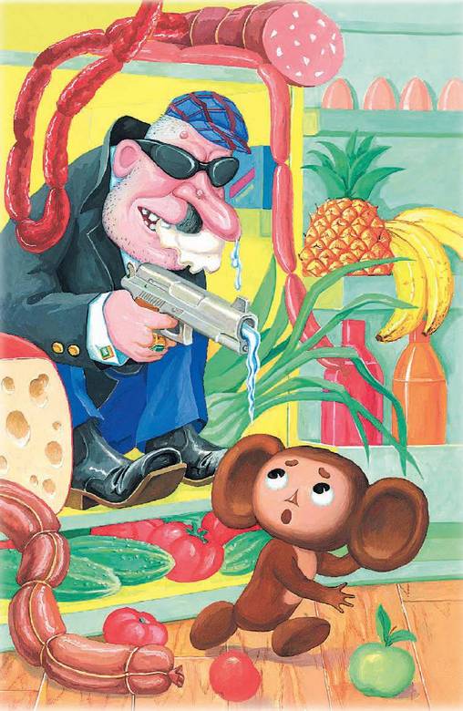 Полезет Чебурашка в холодильник – там представитель белой мафии сидит. Весь он в инее, во рту у него пельмень, а из пистолета сосулька высовывается.