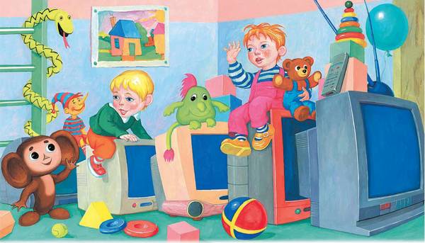 Нет, дети их не смотрели. Дети из телевизоров пирамидки строили и паровозики. А иногда сцену из них делали и песенки пели. Дети в этом саду здоровые были.