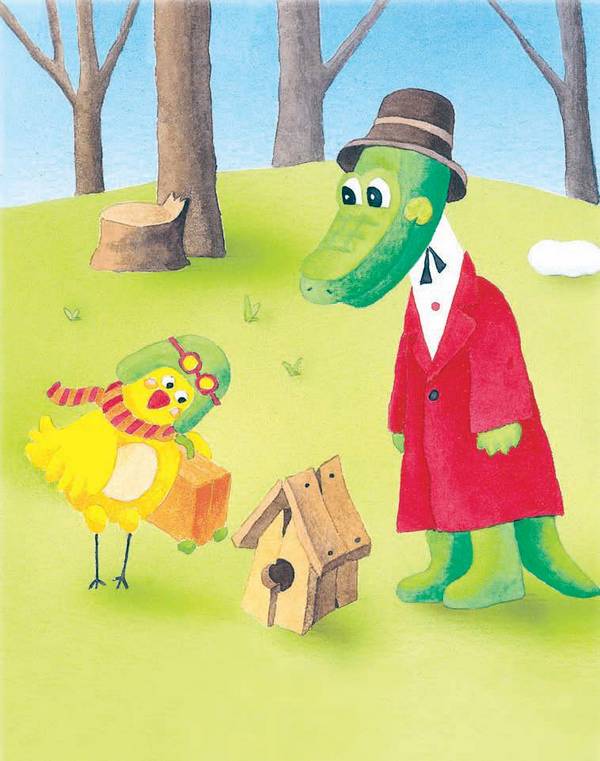 Приближалась весна. Одна птичка уже прилетела. Гена и Чебурашка решили сделать скворечники. Они достали пилу, доски, гвозди и принялись за дело.