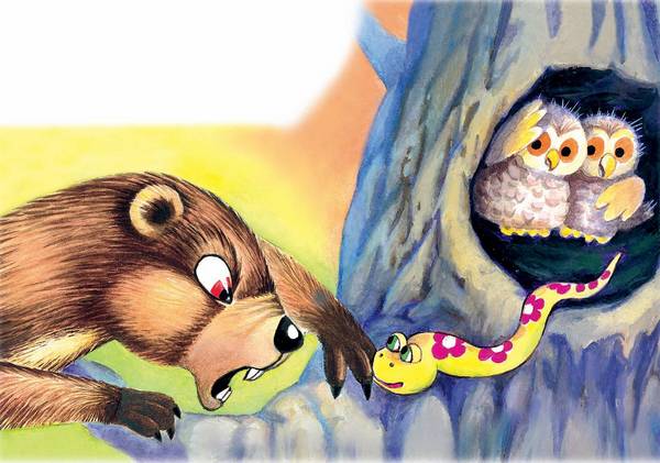 Одна куница захотела птенчиков съесть. Она сунула лапу в дупло, а Змейчик как ухватит её за коготь!