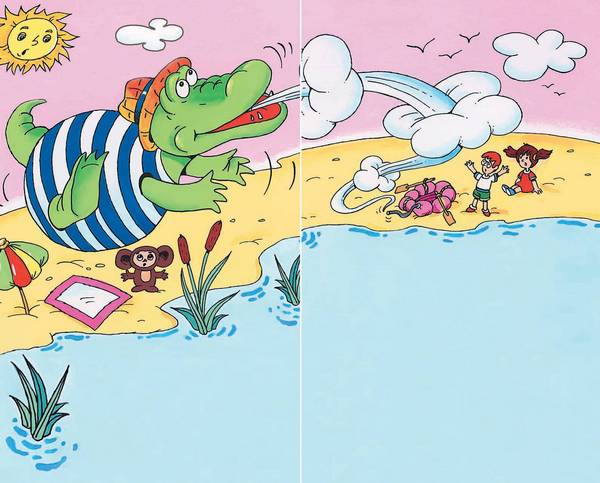 Когда Гена раскрыл пасть, он начал со свистом летать над пляжем. Точь-в-точь как шарик, из которого выпустили воздух!