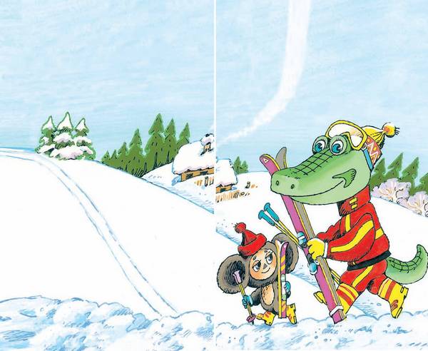 В первую же Генину и Чебурашкину зарплату они купили лыжи с палками. И отправились в ближайшие снежные горы.