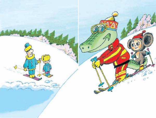 У крокодила Гены катание наладилось сразу. Потому что ему очень помогал хвост. Он был как третья лыжа. Гена лихо съезжал с любой горы, даже с самой крутой.