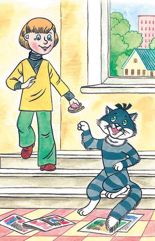 И пошли они к дяде Фёдору. Кот поел и весь день под диваном спал, как барин. А вечером папа с мамой пришли. Мама как вошла, сразу и сказала: