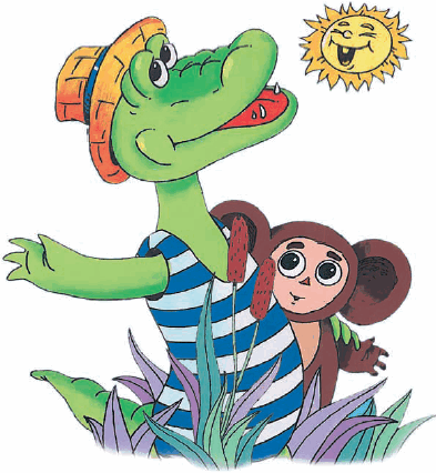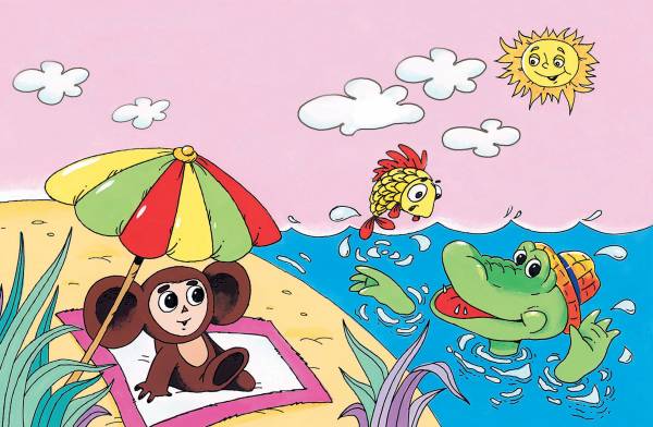 Однажды Гена и Чебурашка отдыхали у реки. Они много купались и загорали.