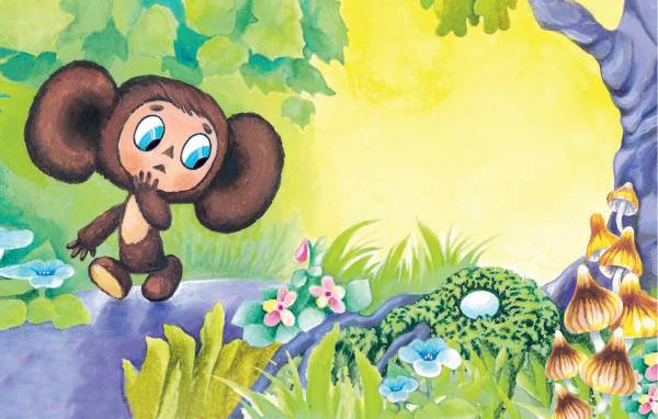 Однажды Чебурашка шёл по лесу и заметил на земле, на моховой кочке, яйцо.