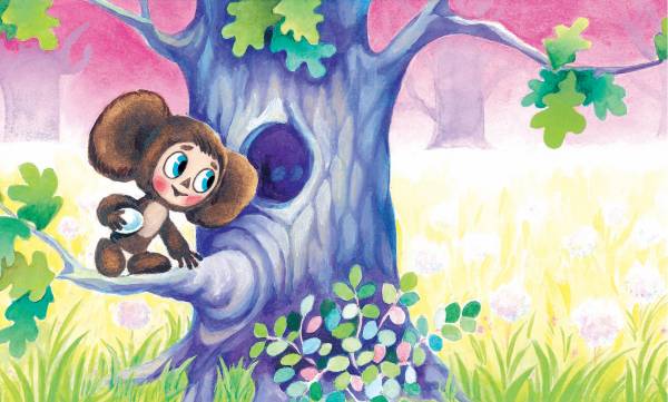 Чебурашка поднял яйцо, залез на дерево и положил его в дупло.