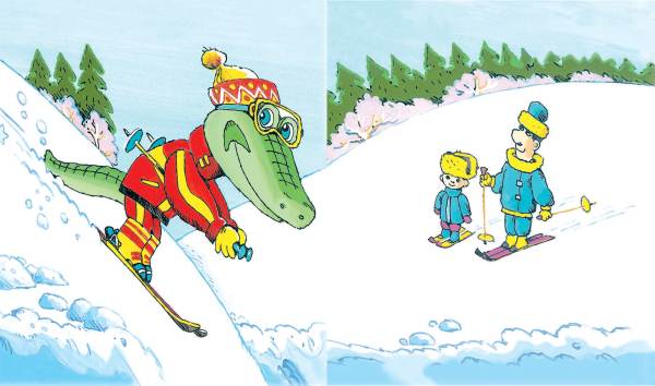 У крокодила Гены катание наладилось сразу. Потому что ему очень помогал хвост. Он был как третья лыжа. Гена лихо съезжал с любой горы, даже с самой крутой.