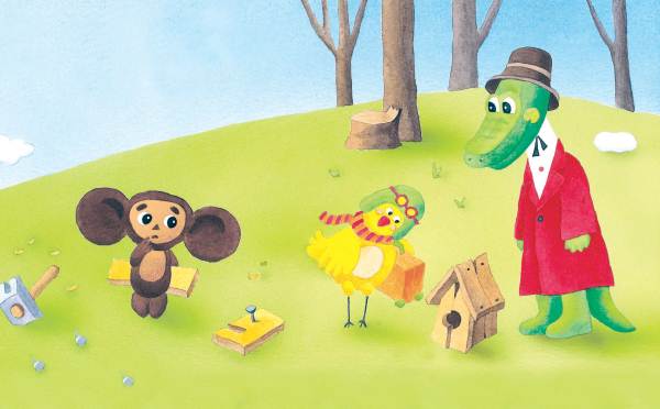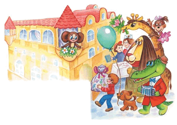 И через неделю Чебурашка получил новую квартиру. На новоселье пришли все, кто был в пикете. И Чандр, и Анюта, и крокодил Гена. И каждый что-то принёс Чебурашке в подарок. Угадай, кто и что подарил Чебурашке?