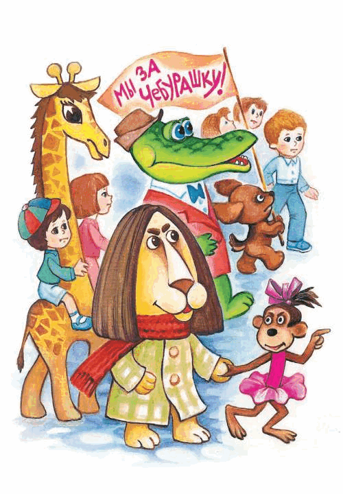 Все пришли: лев Чандр, жирафа Анюта, обезьянка Мария Францевна и даже собака Тобик с плакатом: «Мы за Чебурашку!» Ребята из детского сада, где работал Чебурашка, кричали:
