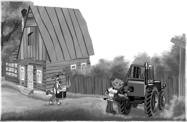 – Ну ничего, дядя Фёдор, не унывай. Хорошо, что я у тебя есть. Мы с твоим трактором справимся. Будем перед ним сосиску держать на удочке. Он за сосиской поедет и нас повезёт.