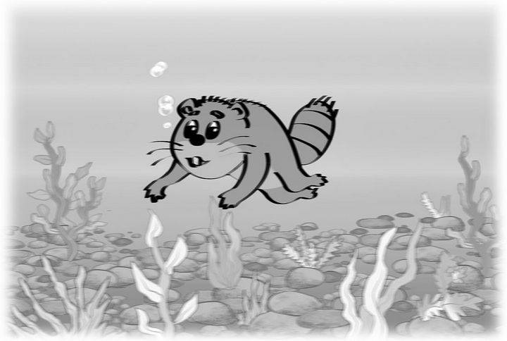 Но тут он почувствовал, что кто-то его за шиворот вверх потянул, к солнышку. А это был бобр старый, он неподалёку плотину строил.