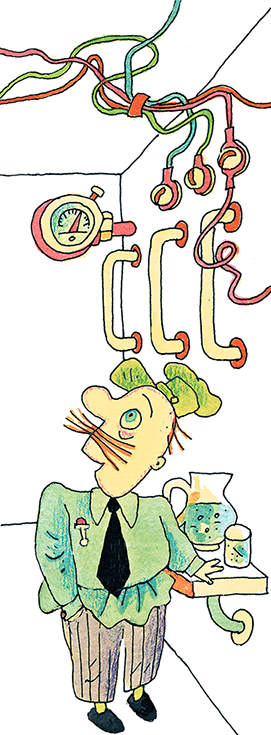Холодилин и Новости Дня побывали уже в трёх телефонных будках. В двух автоматы были сломаны. В третьей автомат работал, но там не было гарантийного человечка.