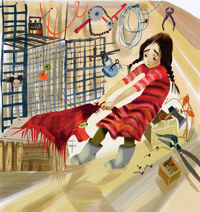 Девочка быстро вытащила замок из ушек, ухватила Камнегрыза за край и, как тяжёлый резиновый коврик, вытянула из клетки.
