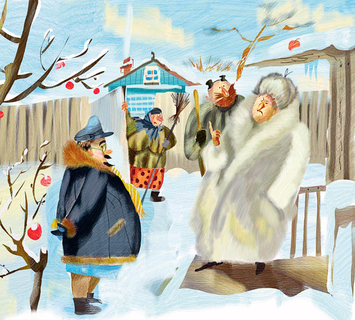 Тем временем ворота открылись, и на участок въехала огромная президентская машина. Из передней дверцы выскочил охранник и стал открывать заднюю дверь для президента. Но дверца не открывалась – она упиралась в яблоню.