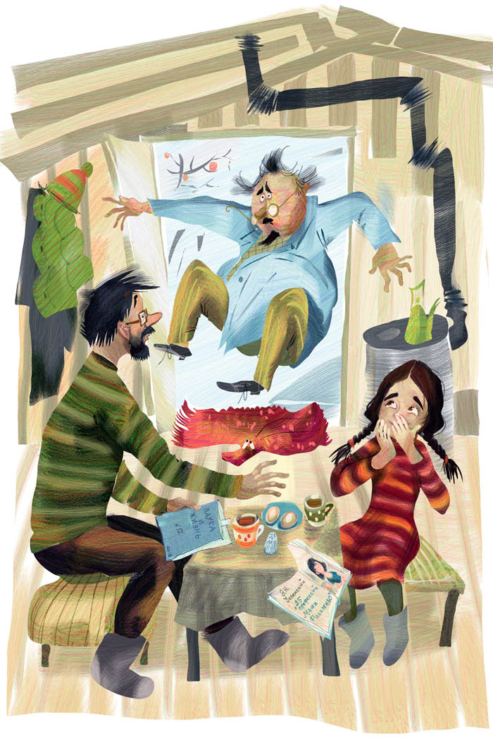 Вдруг крыша дома Егоровых начала скрипеть и прогибаться. Учёные с опаской посмотрели вверх.