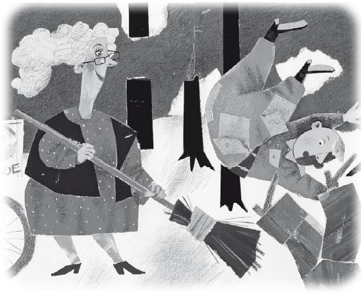 – Чтобы проучить кое-кого! – ответила дворничиха и махнула метлой по ногам двух мужчин. Они оба рухнули как подкошенные.