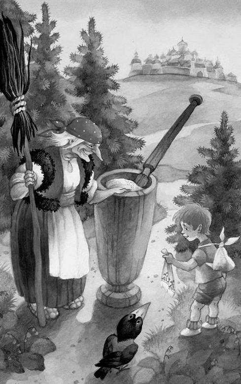 – Скоро только сказка сказывается! – говорила Баба Яга. – И телятина варится! Я, может, больше твоего спешу! Чтобы Василису выручить! Завтра будем там к вечеру.