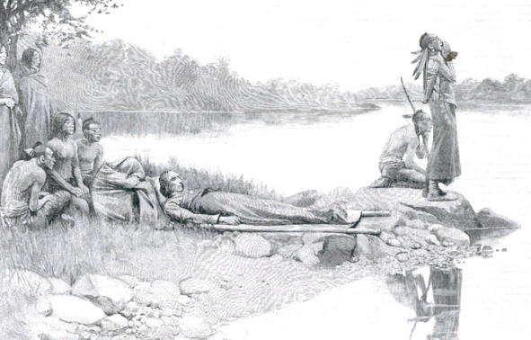 Смерть вождя Вамсутты. Гравюра с картины художника Говарда Пайла (1853—1911)