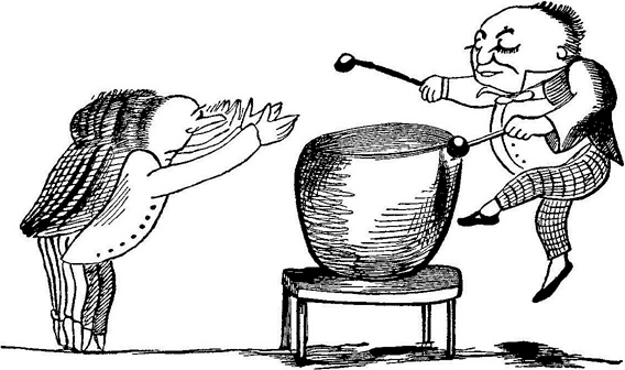 There was an Old Man with a gong,Who bumped at it all the day long;But they called out, 'O law!You're a horrid old bore!So they smashed that Old Man with a gong.День-деньской колотил старичонкаВ брюхо звонкого медного гонга;А прохожие в крик:«О, гремучий старик!»Сокрушённый, замолк старичонка.