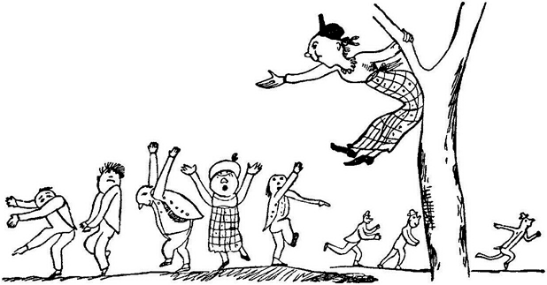 There was an Old Man of Dundee,Who frequented the top of a tree;When disturbed by the crows,He abruptly arose,And exclaimed, 'I'll return to Dundee.Примостился старик из ДандиНа тенистых ветвях, ты гляди;Загалдели вороны,И с насиженной кроныЗакричал он: «Скорее в Данди!»