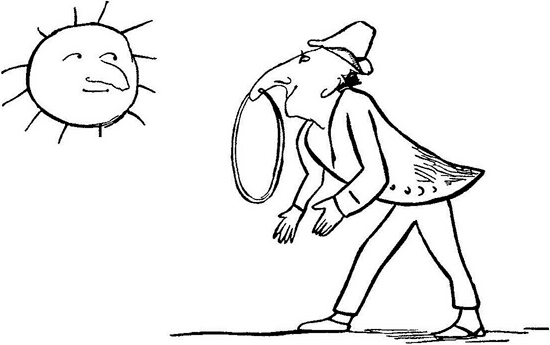 There was an Old Person of Tring,Who embellished his nose with a ring;He gazed at the moonEvery evening in June,That ecstatic Old Person in Tring.Жил-был старец из города Тринг,В нос просунул кольцо сей старинг;И порою ночнойЛюбоваться лунойЭкстатический бегал старинг.