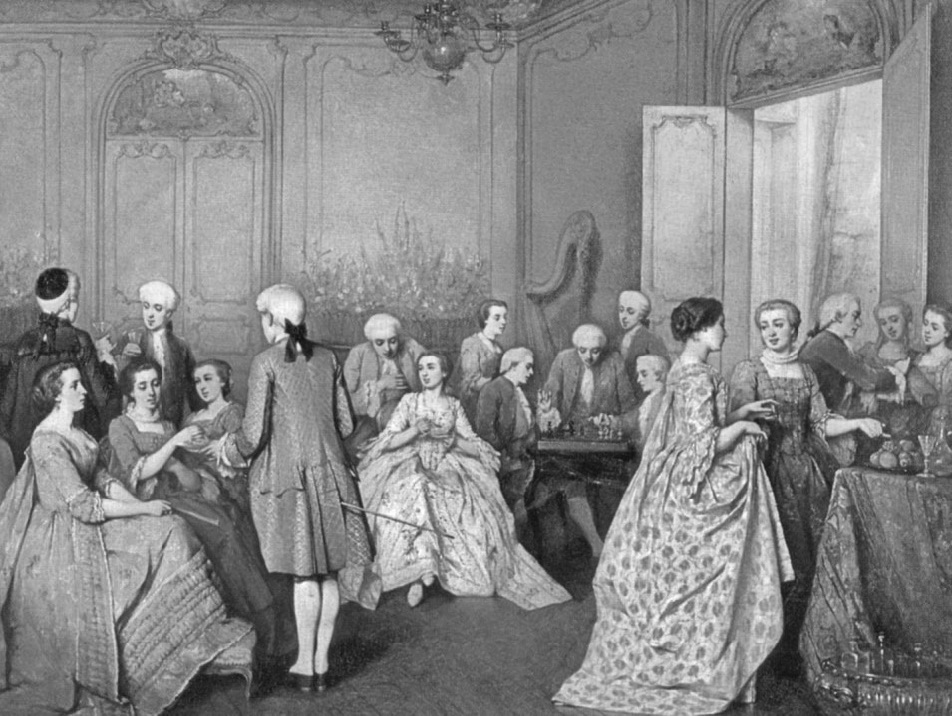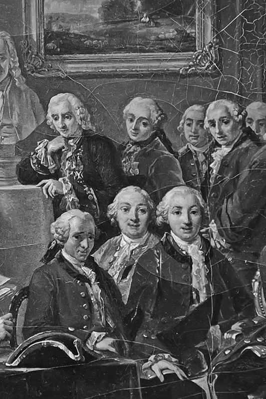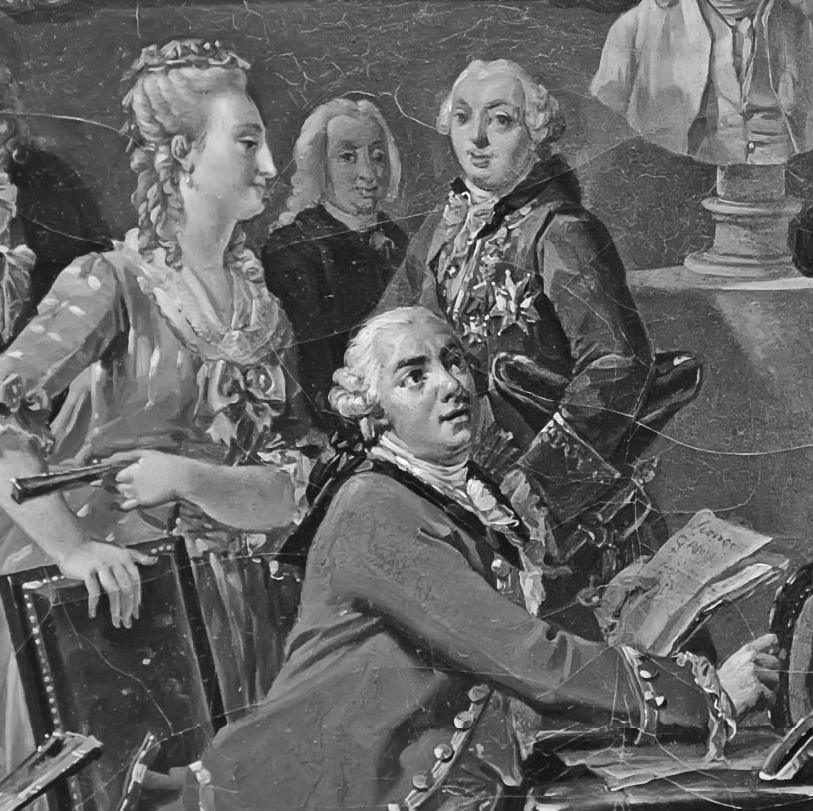 Чтение трагедии Вольтера «Китайский сирота» в салоне мадам Жоффрен. Анисе Шарль Габриэль Лемонье. 1812 г. Фрагмент