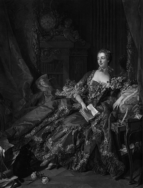 После череды прекрасных дам в его сердце воцарилась мадам де Помпадур – воистину фаворитка-эпоха. Мадам де Помпадур дала свое имя целому стилю – мебели, гобеленам, туалетам и прочему. А как она распоряжалась министрами! А как заботилась о любимом! Когда постаревший король начал сдавать на любовном ристалище, тотчас пришла на помощь. Для пробуждения угасшей чувственности дорогого монарха заботливо устроила для него гарем из юных девственниц.
