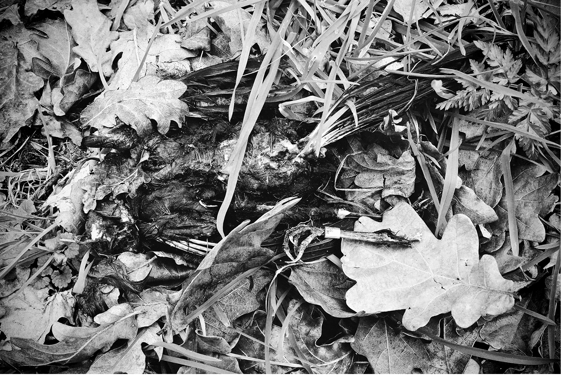 Alongside the grave of Charles and Ann Mothersole I find the remains of a blackbird, dead a week or so and becoming one with the surrounding soil and oak leaves. Banding its leg is an identification ring from the Natural History Museum. Later, I learn the bird’s melancholy fate: ringed in Great Livermere as a fledgling the previous spring, barely moving from its place of birth.