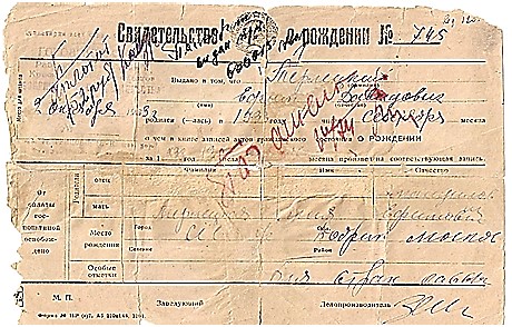 МАТЬ – ТЕРЛЕЦКАЯ ЛИЯ ЕФИМОВНА, В ДЕВИЧЕСТВЕ ЛИРИСМАН, 1905 года рождения.