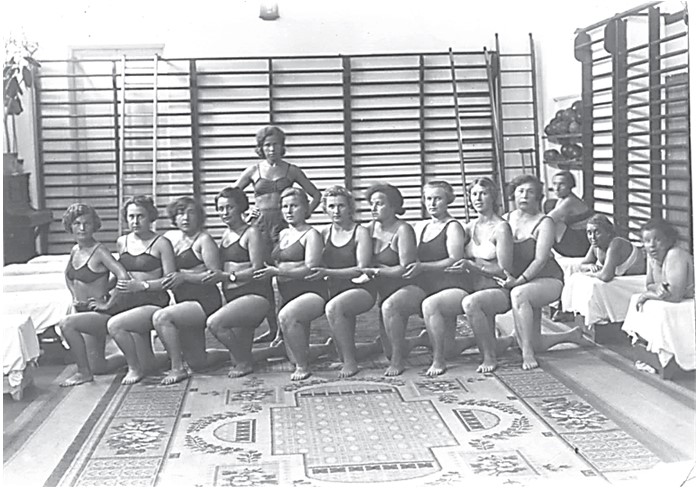 А это мама, третья слева, в крымском женском санатории-грязелечебнице в Саках. 1938 год