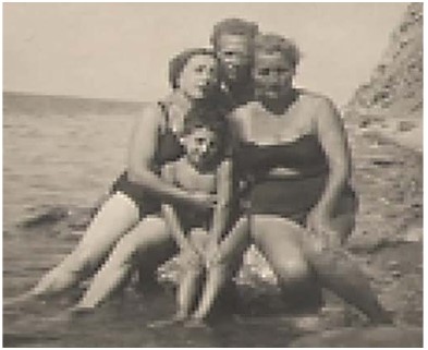 Вот и я с родителями на курорте в Крыму. Анапа, 1938 год. Кто такая упитанная дама рядом с нами – понятия не имею