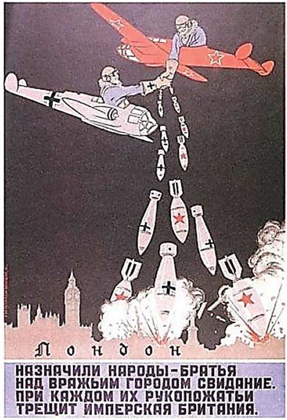 Двадцать второго июняРовно в четыре часаКиев бомбили, нам объявили,Что началася войнаПомните, была такая песня? Не их английский империалистический Лондон бомбили мы с «братьями» фашистами – как на беспрецедентно наглом милитаристском плакате, а наш – советский Киев бомбили эти самые «друзья»-фашисты. Так гений народов Сталин позорно просрал, и я не извиняюсь за это, еще слишком мягкое выражение, начало самой страшной войны в человеческой истории.