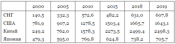 Страны СНГ демонстрировали постоянный рост экспорта своей продукции, ряд из них был и остается крупными экспортерами зерна в мире. В целом рост экспорта стран СНГ за последние два десятилетия вырос более чем в 4 раза. Вместе с тем приведенные нами данные по другим интеграционным объединениям и ведущим мировым экономикам свидетельствуют, что у стран СНГ есть еще и существенные резервы по наращиванию своих экспортных возможностей.