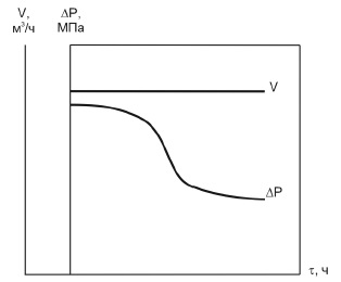 Рис. 10 – Изменение гидравлического сопротивления расширяемого бурового канала во времени