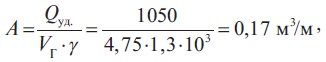 Эффективность расширения (проработки) угольного канала может быть определена следующим образом. Учитывая, что среднечасовой расход воздушного дутья равнялся 1740 м3/ч, удельный его расход на перемещение очага горения на 1 м (погонный) горизонтального канала рассчитывают по формуле (7):