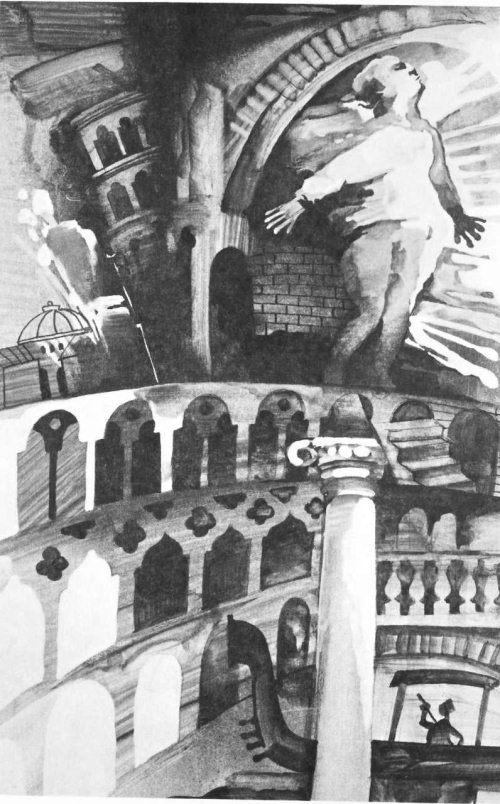 Кон быстро идет по пустынной дороге, через площадь Ромула и Рема, не отрывая завороженного взгляда от этого кроваво-таинственного отсвета – через огромное поле цирка Массимо – прожекторных фар гигантского многоэтажного лабиринта дворцов эпох и Юлиев, Флавиев, Северов, дворцов, прораставших один в другом, выраставших один из другого, павших под нашествием варваров, но в гибели своей воздвигших самим себе колоссальный монумент развалин, равного по величию которому нет в мире; быть может, здесь, где на миг замер Кон, столетья назад стоял Питер Брейгель-старший, захваченный зрелищем циклопических развалин, чтобы затем кистью в своей "Вавилонской башне" запечатлеть мощь и летучесть вздымающихся развалин арок и уходящие в глубь земли тоннели некогда роскошных залов и коридоров.