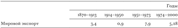 Второй период развития мировой экономики в условиях современного экономического роста приходится на 1914–1950 годы. Это время глубокого кризиса: две мировые войны, экономические потрясения конца 20‐х – начала 30‐х годов, спровоцированные многими факторами, в числе которых и кризис золотовалютного стандарта. Снижаются темпы роста мировой торговли и ее доли в ВВП, растет протекционизм, широкое распространение получают запретительные тарифы. Все это прокладывает дорогу торговым войнам, конкурентной девальвации национальных валют, приводит к свертыванию мирового рынка капитала, широкому распространению ограничений на валютные операции.