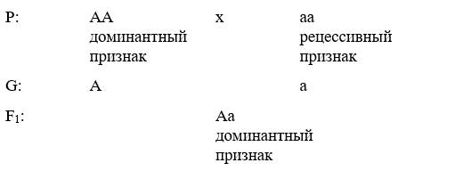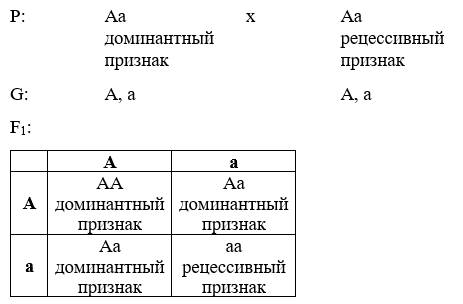 Схема гипотезы для моногибридного скрещивания: