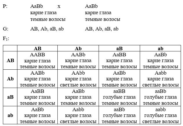 Схема гипотезы для дигибридного скрещивания: