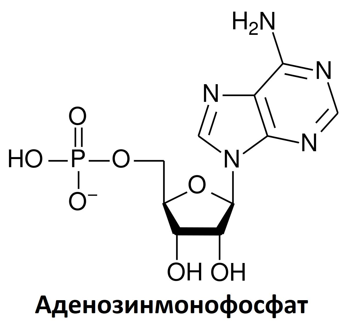 Объединив три составляющие – получаем мононуклеотид. На картинке ниже изображен аденозинмонофосфат.