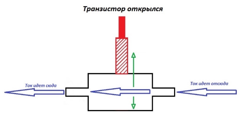 А вот теперь «кран» открылся, и транзистор пропускает через себя ток.