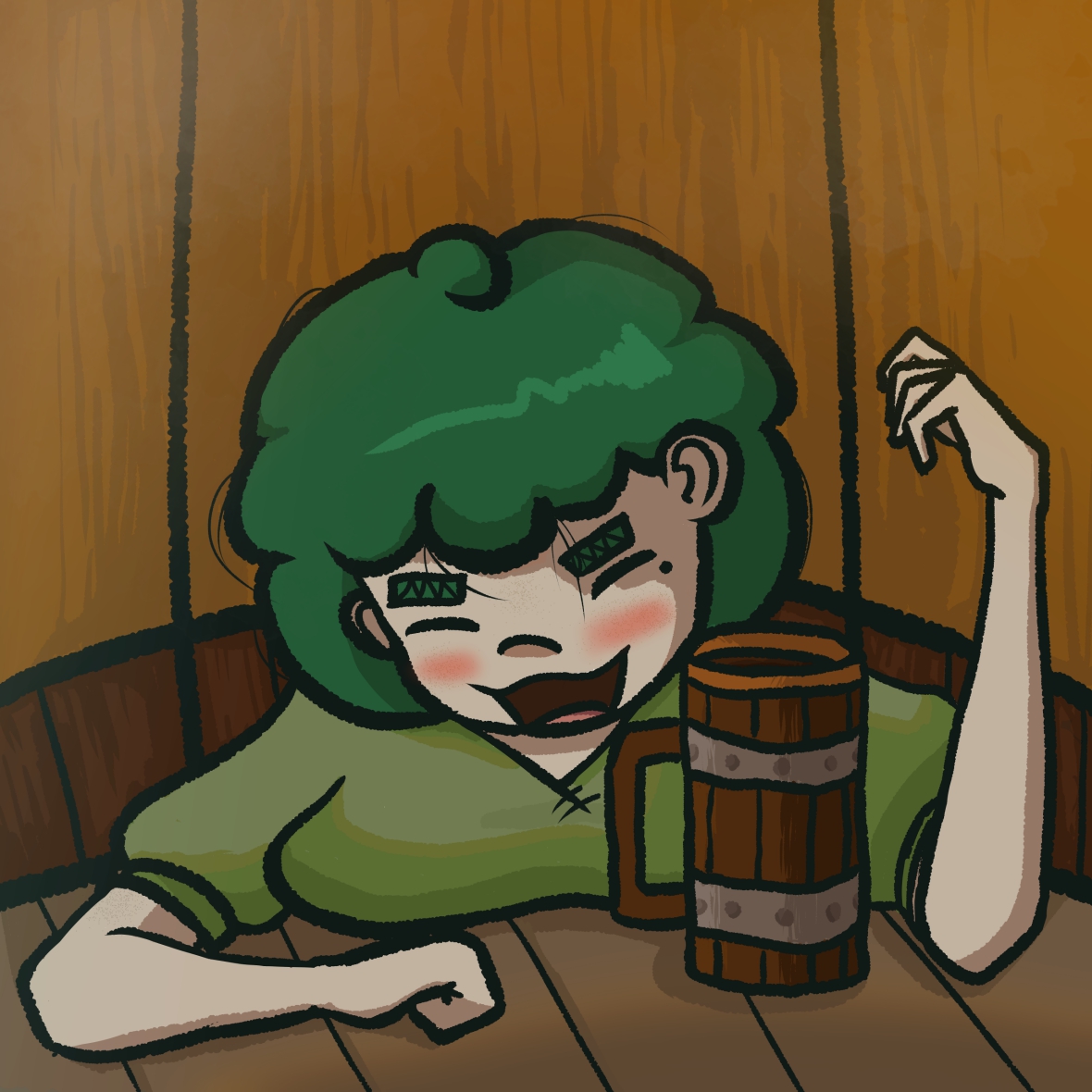 Бокал был получен! Кёрли подбежал к стойке, взял свой напиток и начал переливать его из кружки в красивую тару. В этот же момент он заприметил нахмуренный взгляд бармена, отчего ему пришлось моментально проявить уважение и отпить несколько глотков счастливого пойла.